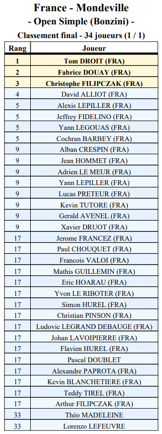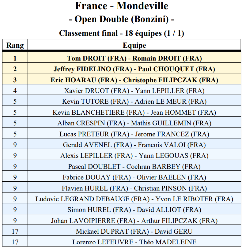 2e Jeffrey FIDELINO (Villers-Bocage) & Paul CHOUQUET (Villers-Bocage)3e Christophe FILIPCZAK (Donville) & Eric HOARAU (Donville)
