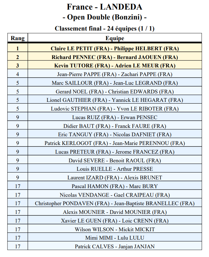 1er : Claire LE PETIT (Chevaigné) & Philippe HELBERT (Edern)